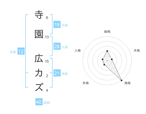 寺園 広カズさんの地格は21画の5点!