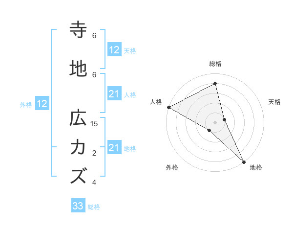 寺地 広カズさんの地格は21画の5点!