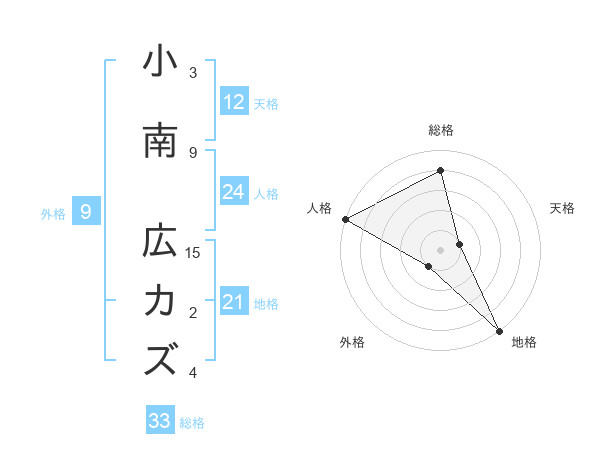 小南 広カズさんの総格は33画の4点!