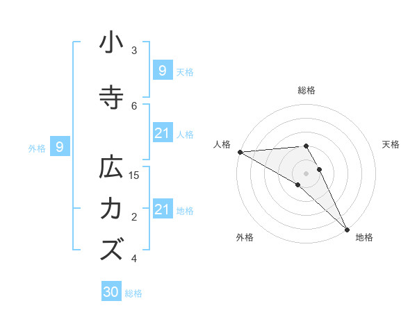 小寺 広カズさんを姓名の画数から五運を鑑定