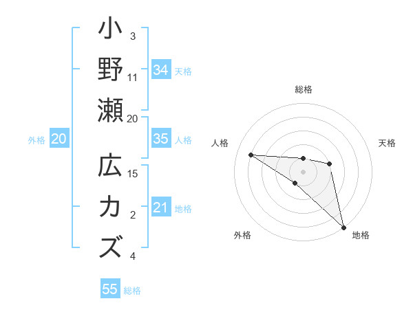 小野瀬 広カズさんを姓名の画数から五運を鑑定