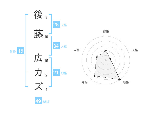 後藤 広カズさんの総格は49画の2点!