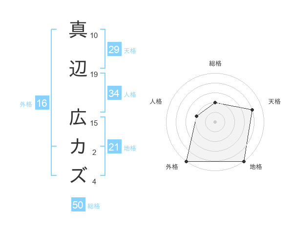 真辺 広カズさんの天格は29画の4点!