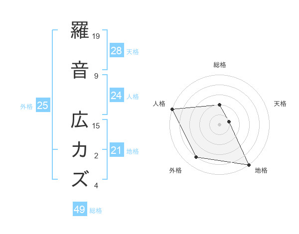 羅音 広カズさんを姓名の画数から五運を鑑定
