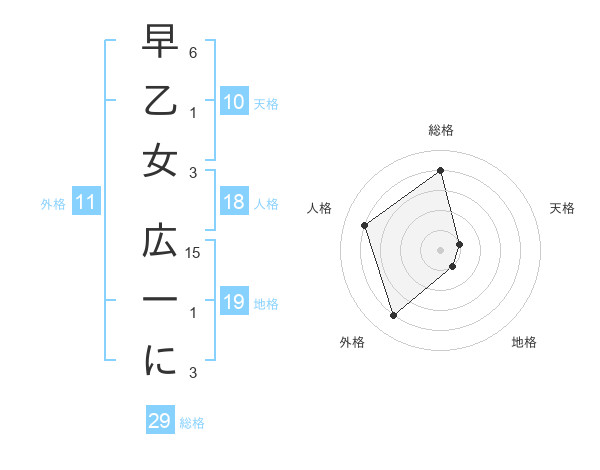 早乙女 広一にさんを姓名の画数から五運を鑑定