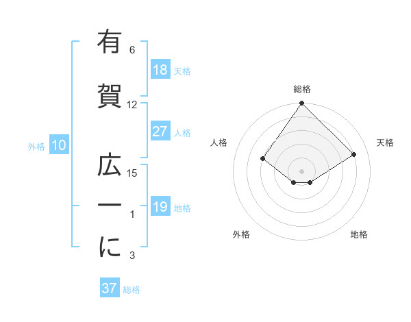 有賀 広一にさんを姓名の画数から五運を鑑定