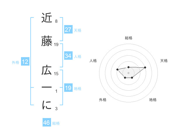 近藤 広一にさんを姓名の画数から五運を鑑定