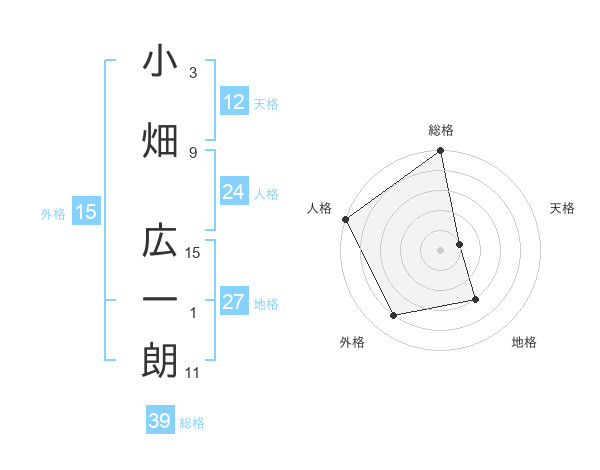 小畑 広一朗さんを姓名の画数から五運を鑑定