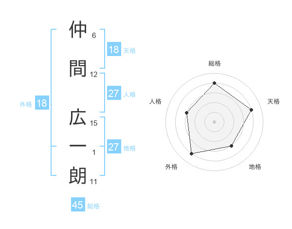 仲間 広一朗さんを姓名の画数から五運を鑑定