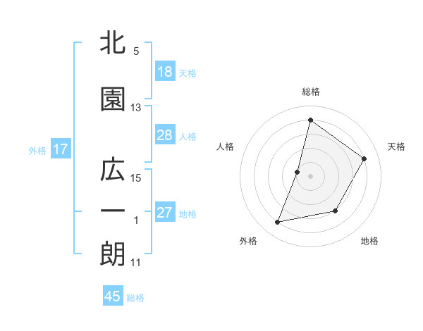 北園 広一朗さんを姓名の画数から五運を鑑定