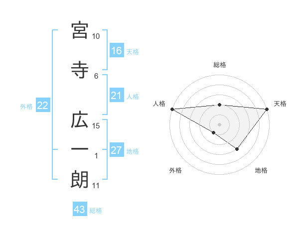 宮寺 広一朗さんの総格は43画の2点!