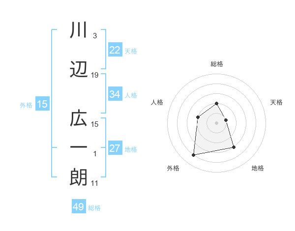 川辺 広一朗さんを姓名の画数から五運を鑑定