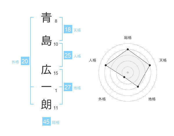 青島 広一朗さんの総格は45画の4点