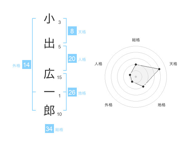 小出 広一郎さんを姓名の画数から五運を鑑定