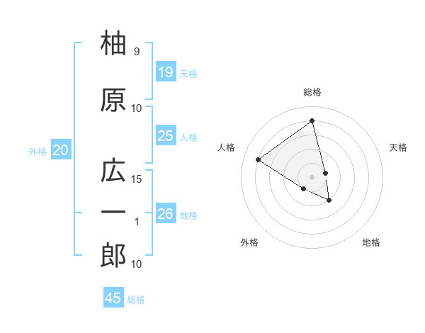 柚原 広一郎さんを姓名の画数から五運を鑑定