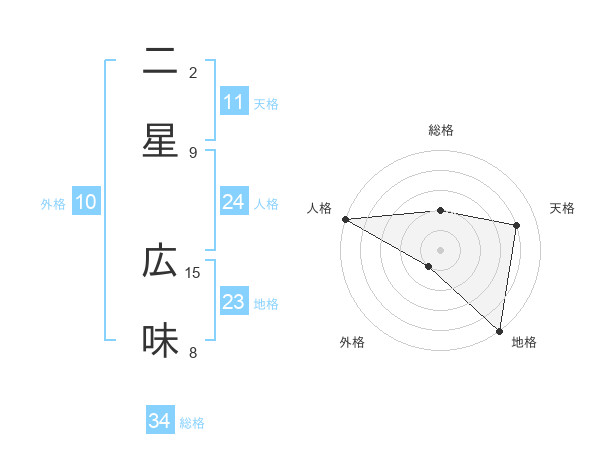 二星 広味さんの総格は34画の2点!