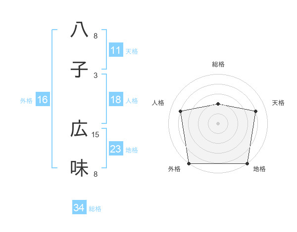 八子 広味さんの総格は34画の2点!