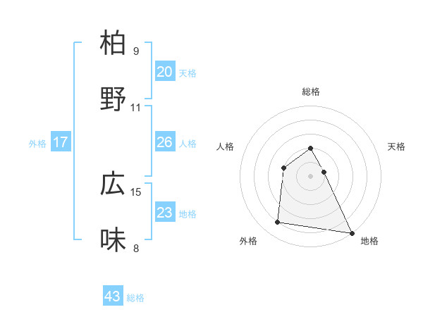 柏野 広味さんの地格は23画の5点!