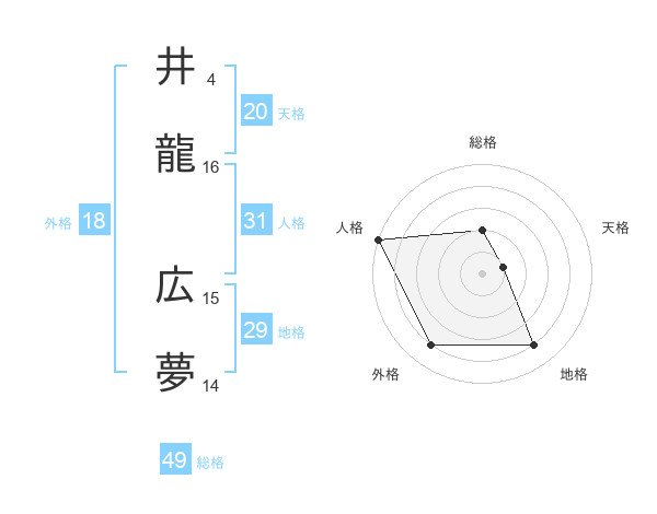 井龍 広夢さんを姓名の画数から五運を鑑定