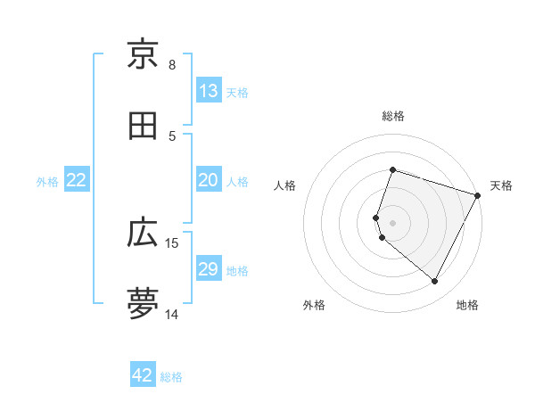 京田 広夢さんの天格は13画の5点!