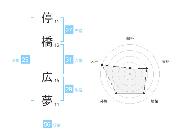 停橋 広夢さんを姓名の画数から五運を鑑定