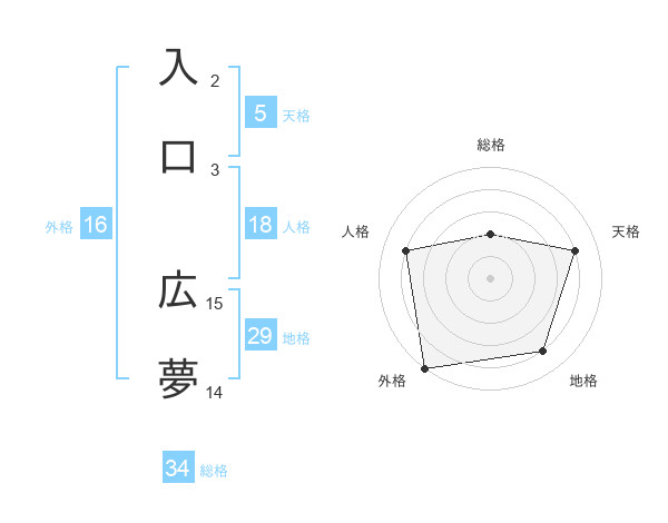 入口 広夢さんの総格は34画の2点!