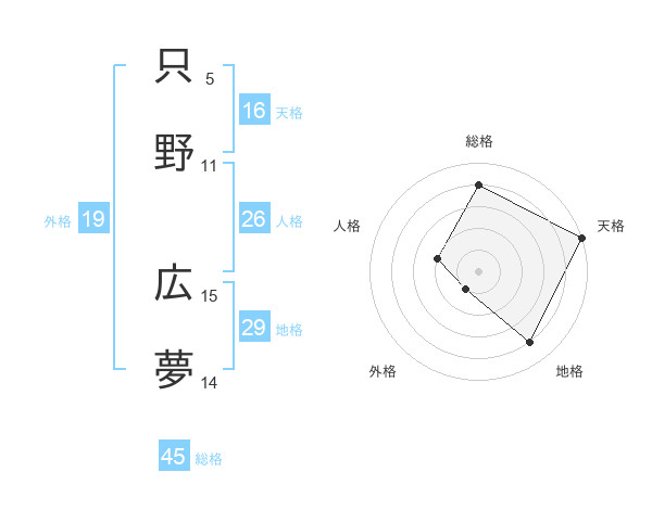 只野 広夢さんの総格は45画の4点!