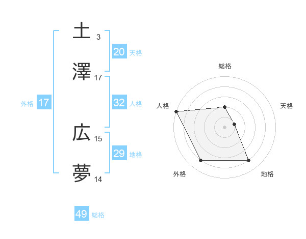 土澤 広夢さんの総格は49画の2点!