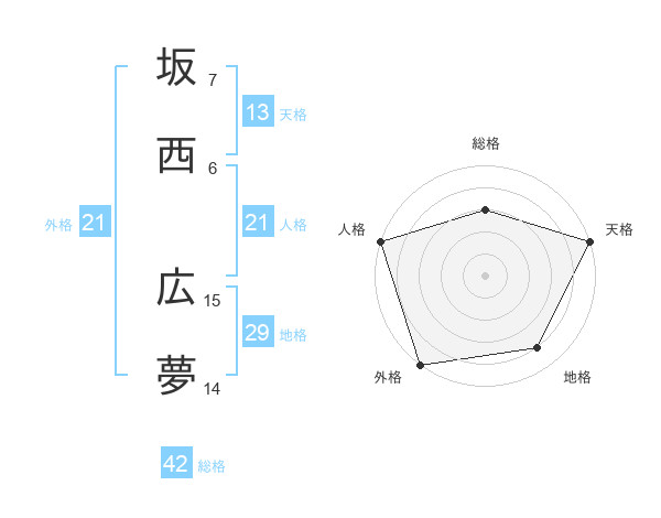 坂西 広夢さんの人格は21画の5点!