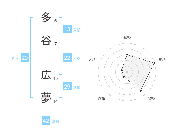 多谷 広夢さんを姓名の画数から五運を鑑定