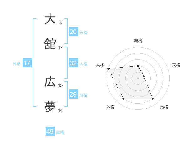 大舘 広夢さんの総格は49画の2点!