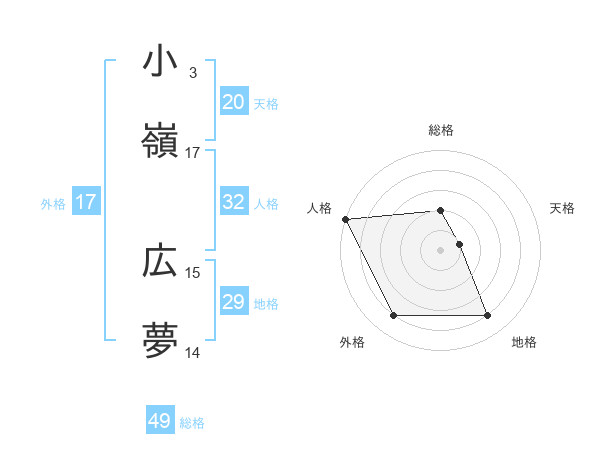 小嶺 広夢さんの総格は49画の2点!