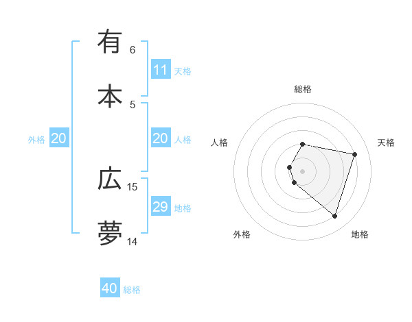 有本 広夢さんの総格は40画の2点!