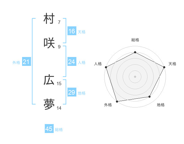 村咲 広夢さんを姓名の画数から五運を鑑定