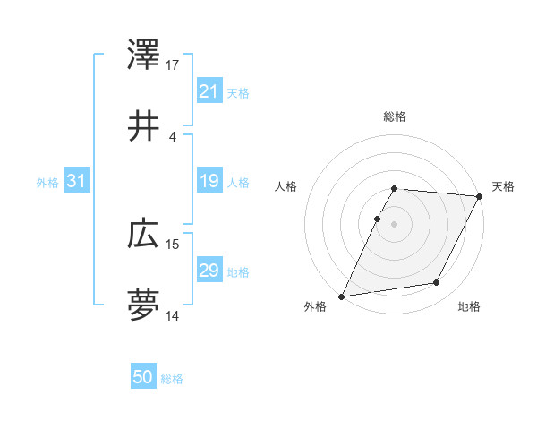 澤井 広夢さんの総格は50画の2点!