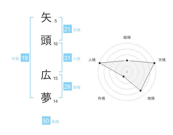 矢頭 広夢さんを姓名の画数から五運を鑑定