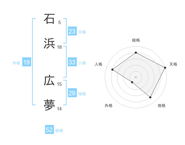 石浜 広夢さんを姓名の画数から五運を鑑定