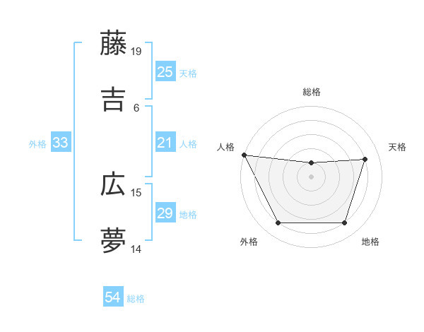 藤吉 広夢さんを姓名の画数から五運を鑑定