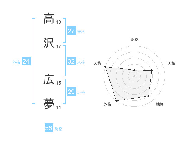 高沢 広夢さんを姓名の画数から五運を鑑定