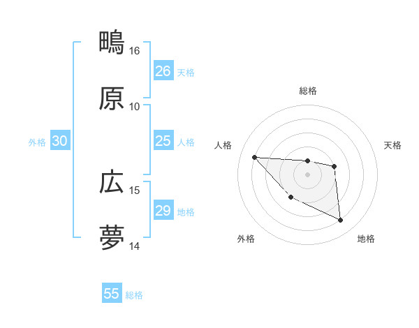 鴫原 広夢さんを姓名の画数から五運を鑑定