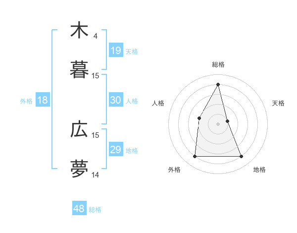 木暮 広夢さんの総格は48画の4点!