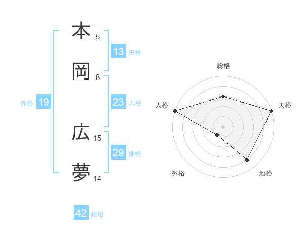 本岡 広夢さんを姓名の画数から五運を鑑定