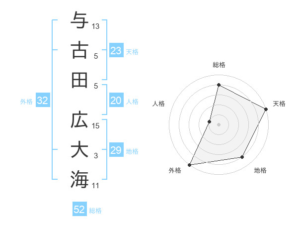 与古田 広大海さんを姓名の画数から五運を鑑定