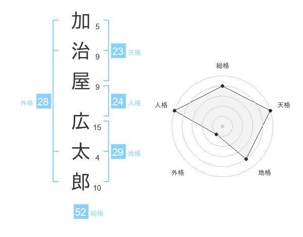 加治屋 広太郎さんを姓名の画数から五運を鑑定