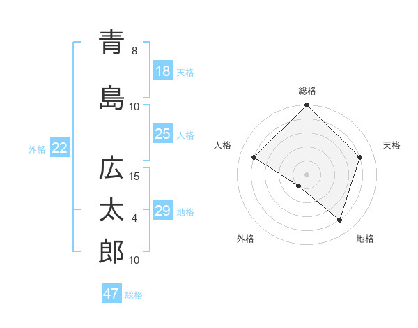 青島 広太郎さんの総格は47画の5点!