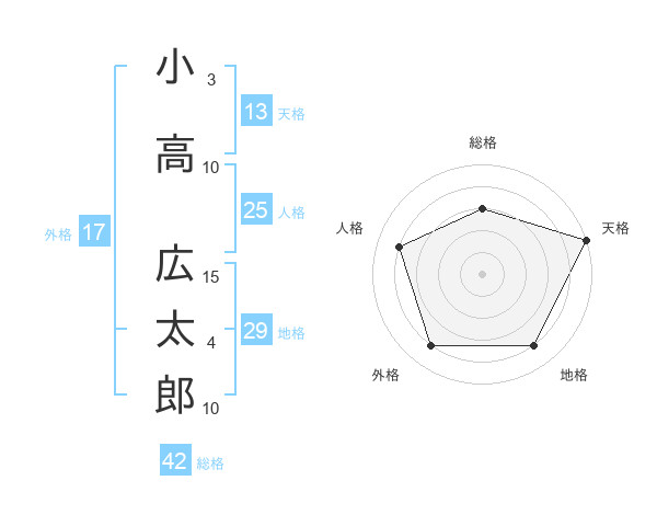 小高 広太郎さんの総格は42画の3点!