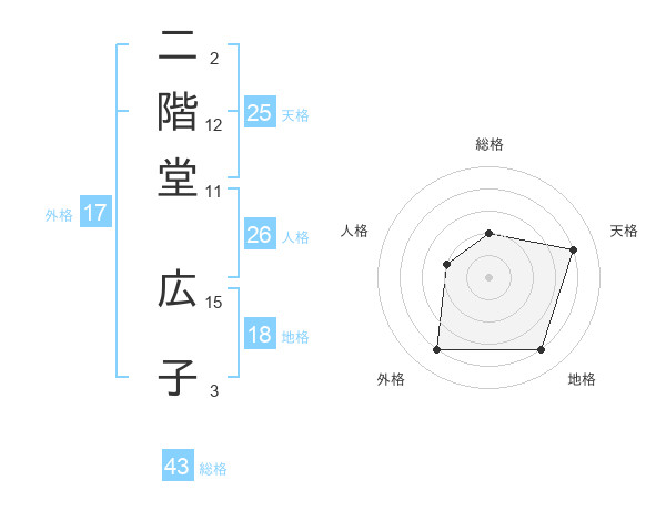 二階堂 広子さんを姓名の画数から五運を鑑定