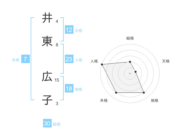 井東 広子さんの総格は30画の2点!