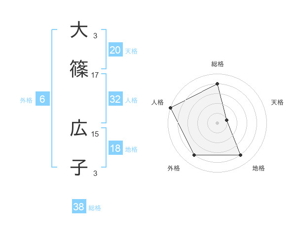 大篠 広子さんの総格は38画の4点!