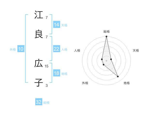 江良 広子さんの総格は32画の5点!